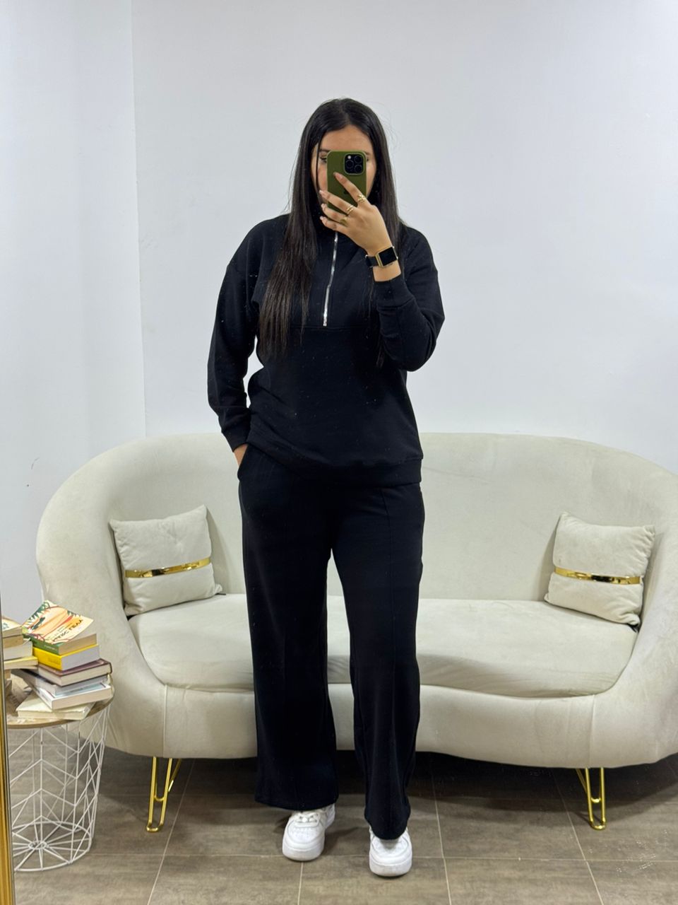 ensemble sweat-shirt noir, conçu pour allier confort et style. Fabriqué à partir de molleton rasé 100% coton de qualité supérieure, il offre une douceur exceptionnelle au toucher et une légèreté idéale en toute saison. Sa coupe moderne et sa teinte sobre en font une pièce parfaite pour un look décontracté et élégant. Durable et confortable, il vous accompagnera aussi bien lors de vos sorties quotidiennes que pendant vos moments de détente à la maison. Un incontournable pour une garde-robe tendance